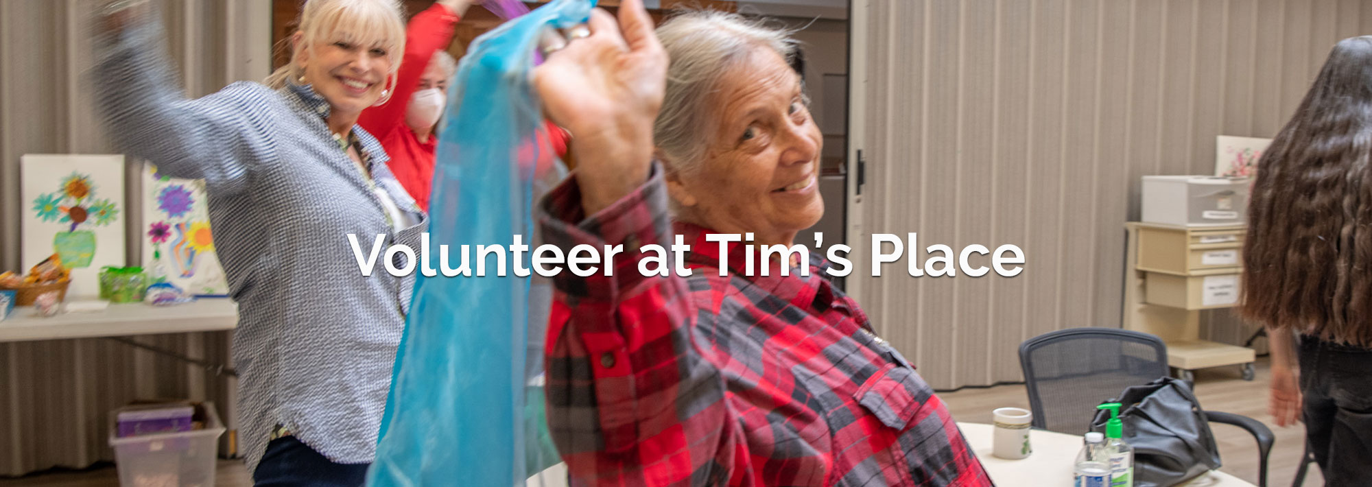 - Engagement: After completing the volunteer orientation and a simple background check you’ll have the opportunity to participate at Tim’s Place with the guidance and support of our amazing team.